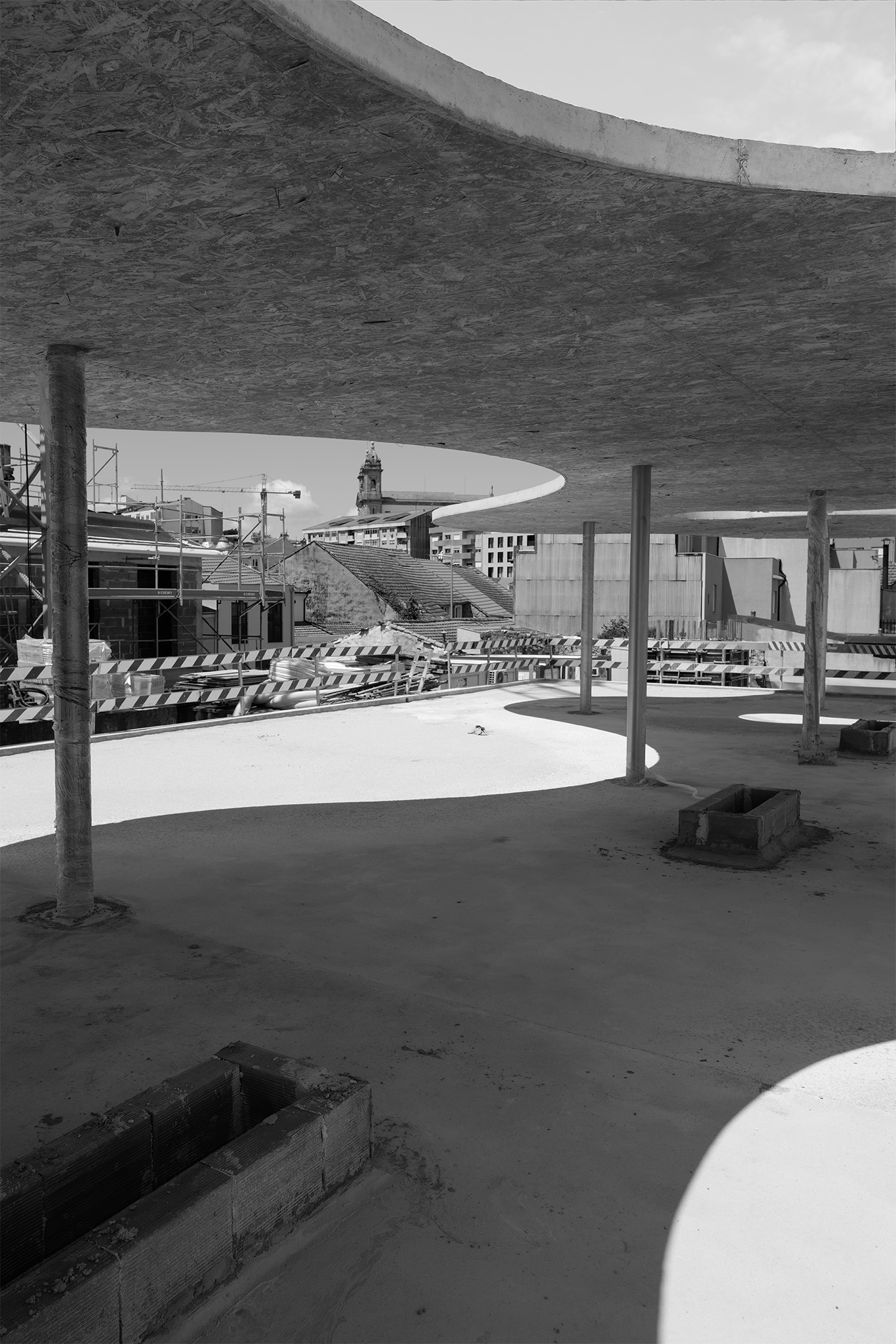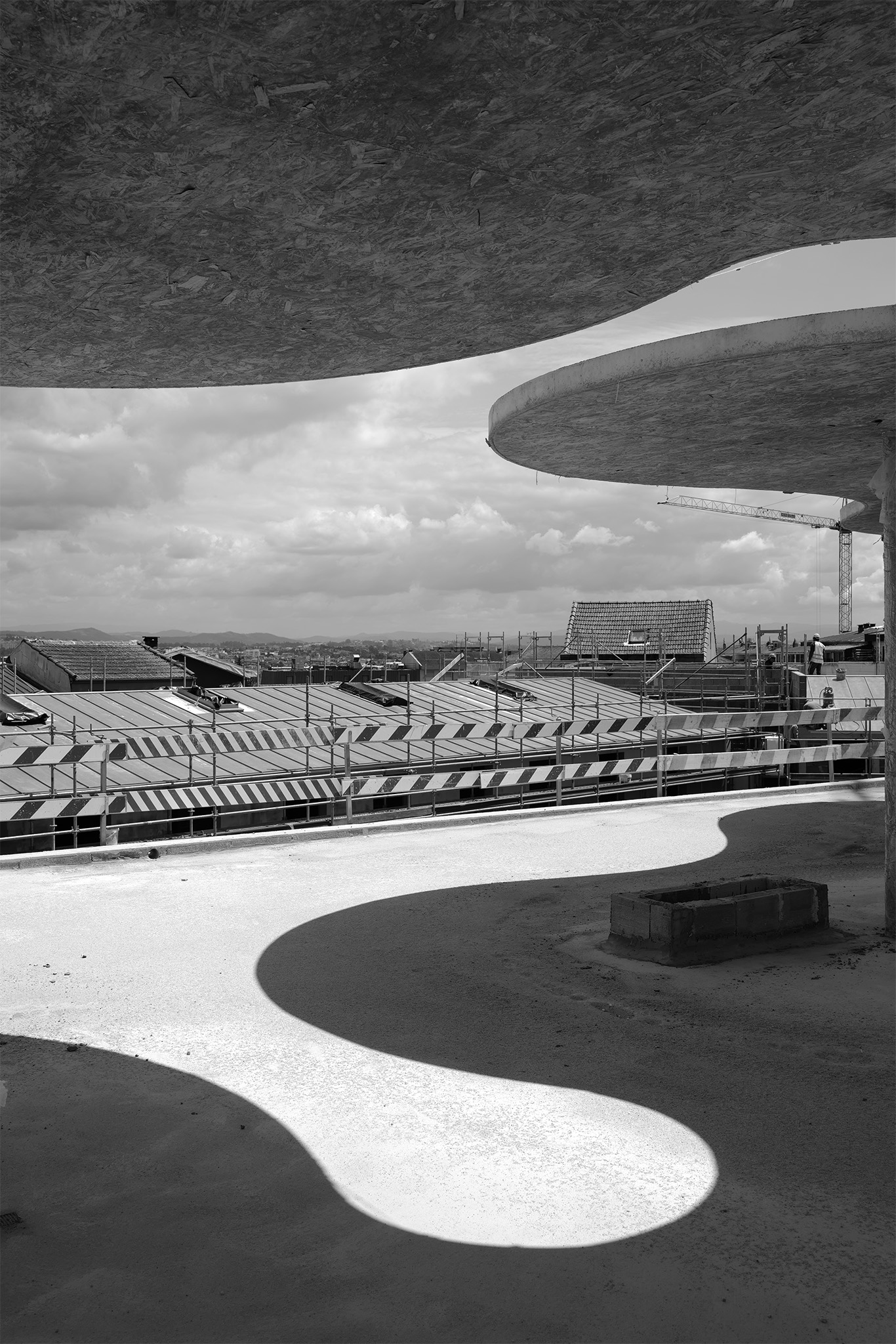O bloco central, pela sua localização especial, é composto por seis duplex com uma cobertura acessível a todos. Para quebrar a regra, achamos divertido a introdução de uma cobertura no terraço com uma forma orgânica.